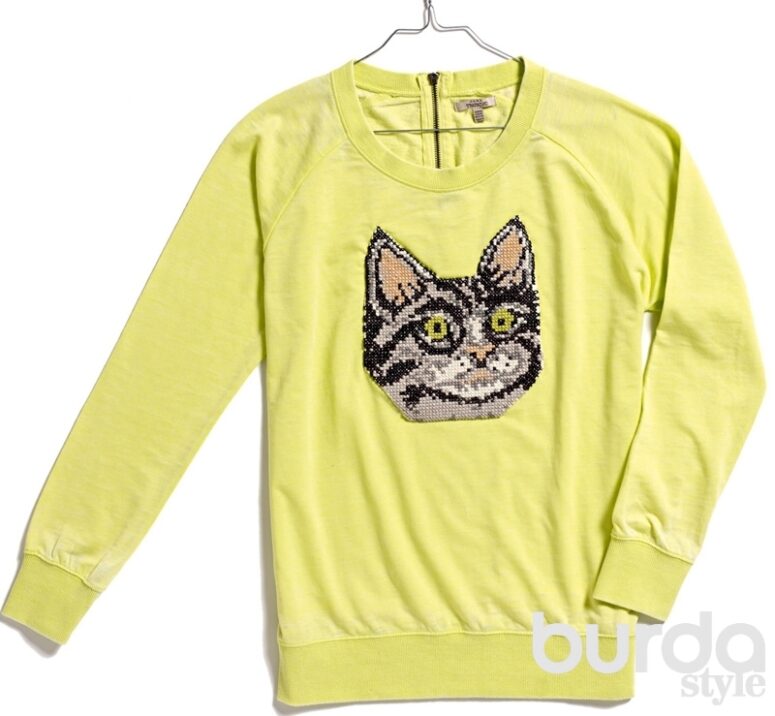 Если вы любите кошек и увлекаетесь вышивкой, этот проект поможет вам объединить два ваших хобби. На готовом свитшоте аккуратно нашит ...